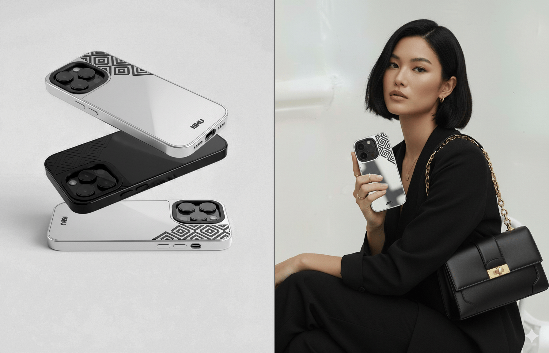 It’s not just a case it’s a sleek accessory that blends style and function. With a built-in mirror and ISHU’s signature pattern, it keeps your phone protected while adding a practical tool you’ll actually use every day.